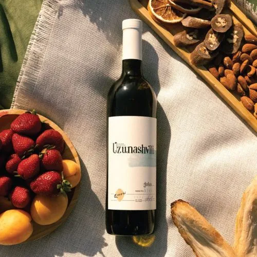 This wine is derived from Rkatsiteli grapes harvested in the Mukuzani Controlled Appellation of Origin and made by the traditional Georgian method in subterranean terracotta jars – Qvevri. It exhibits powerful notes of dried apricots and roasted nuts. A full-bodied taste, rich in fine tannins from traditional long maceration, shows suppleness and is bountiful.